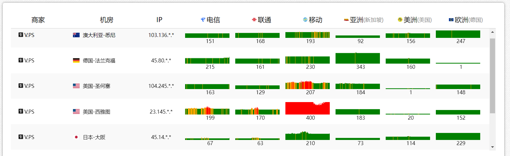 日本大阪:应该是IIJ,绕东京,直连的iij线路。